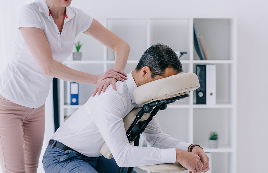 Seated massages: This involves the therapist bringing their massage chair and providing a massage to the recipient's backs, shoulders, necks, heads, arms, and hands.